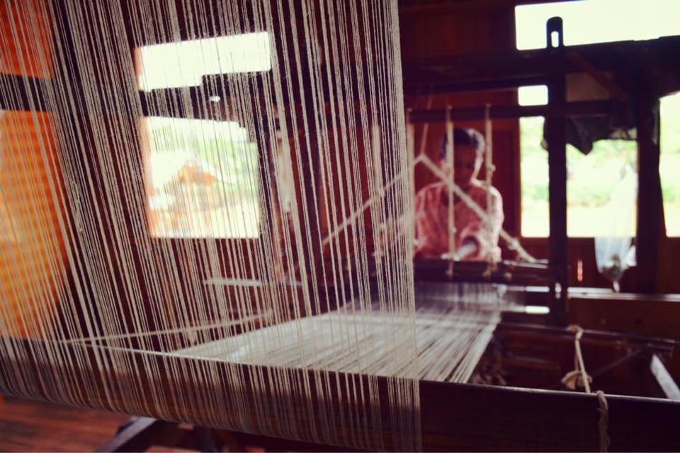 水上家屋のなかには住宅だけでなく、レストランや蓮糸や絹の織物工房、パゴダもあります。工房には いくつか見学に立ち寄ります。
