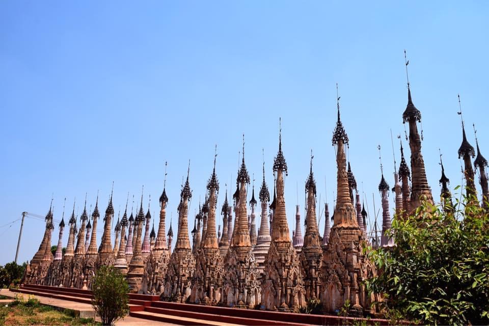 ガイドが同行してから1時間ほどでカックー遺跡に到着。遺跡には、たくさんの仏塔が立ち並んでいます。その数は2000を超えるそう。カックー遺跡は、パオ族とシャン族の遺跡で 両族の仏塔が半分ずつ並んでいるのだそう。見分け方をガイドの青年が説明してくれて、なるほどーとは思ったけど すぐに忘れてしまいました。