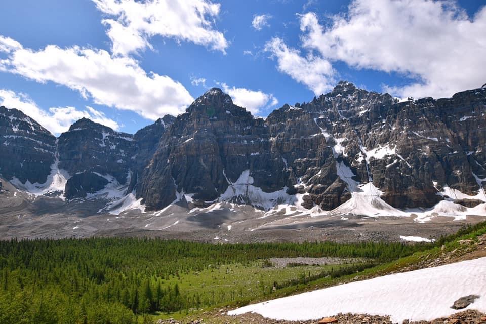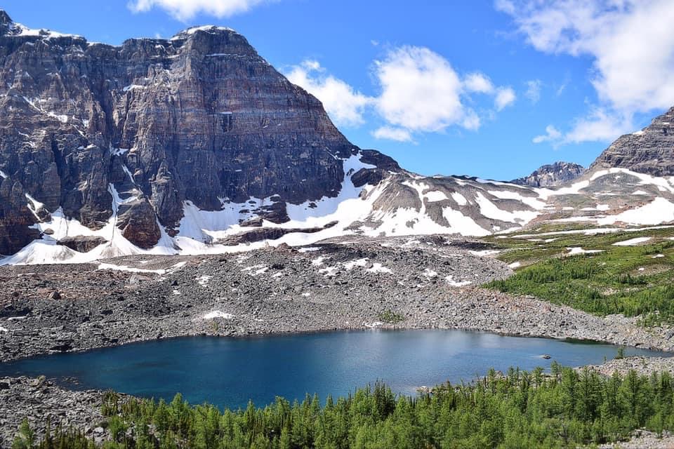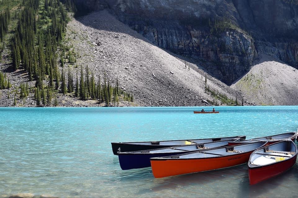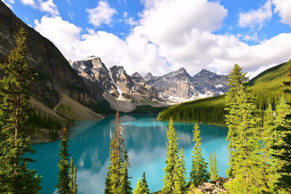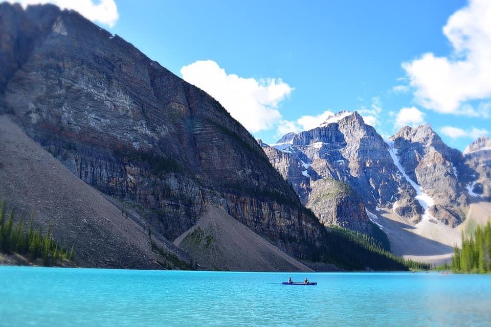 モレーン湖もペイトー湖と同じく氷河が水源の湖です。氷河が溶ける夏の間、鮮やかなターコイズブルーに染まった 湖が見どころです。