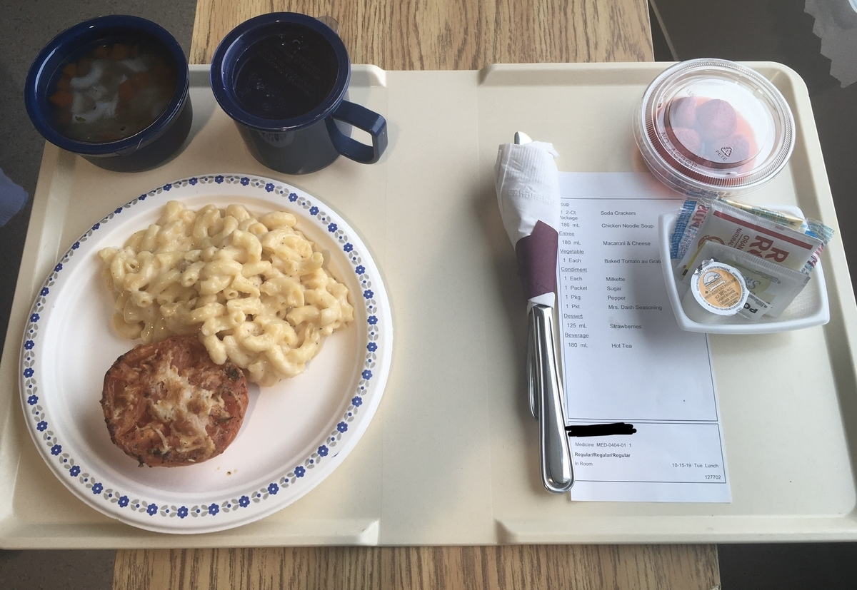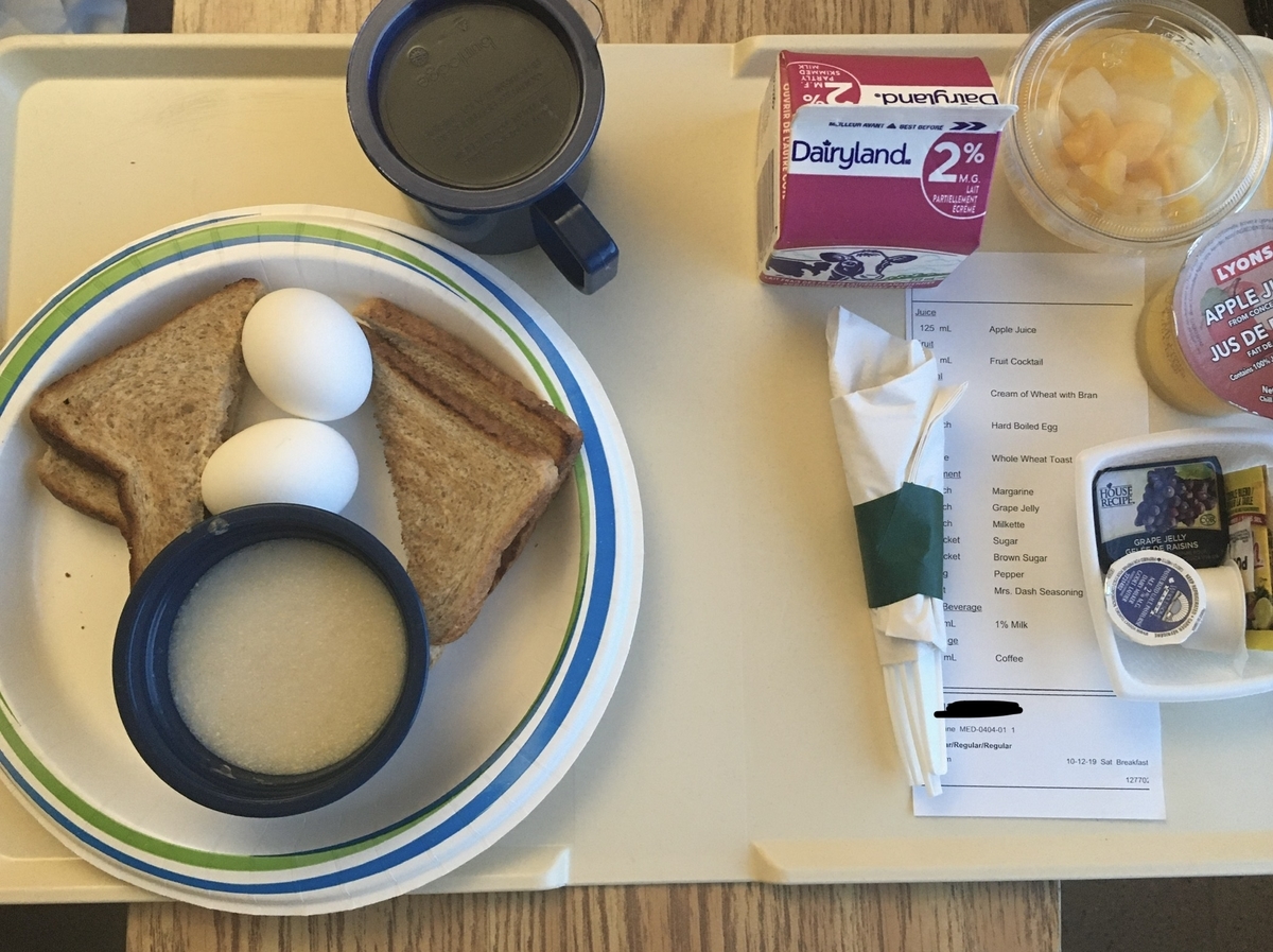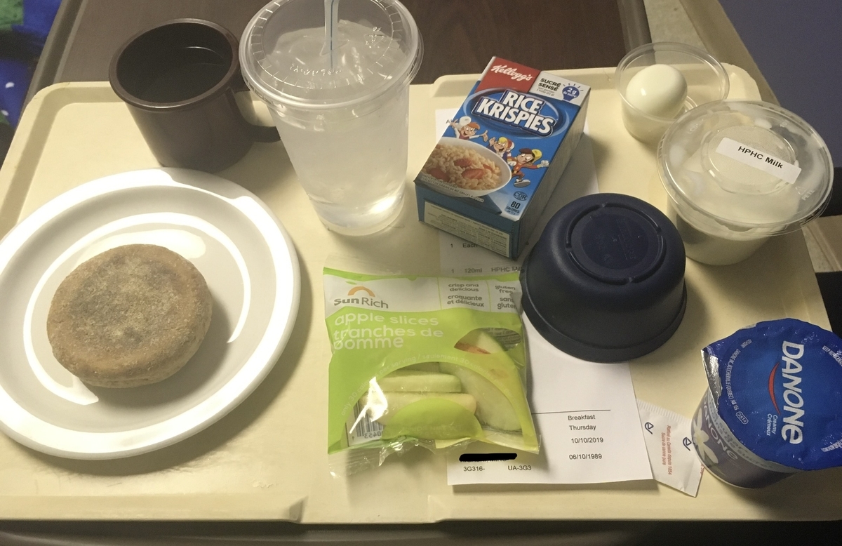 そして、イエローナイフ Stanton Territorial Hospital での朝食と昼食。贅沢なことは言えませんが、イエローナイフの病院の食事の方が美味しかったです。