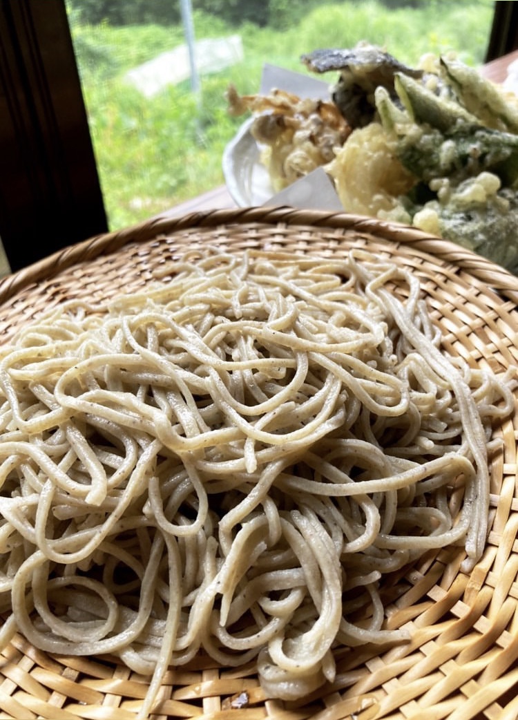 こちらのお店は、まず蕎麦が美味しいです。蕎麦は螢の緑(¥920)と深里(¥830)の2種類があって、螢の緑が蕎麦殻を除いた蕎麦粉をつかったお蕎麦で深里が蕎麦柄入りの蕎麦粉をつかったお蕎麦です。いつもお蕎麦に、季節の天ぷら(¥690)とくるみダレ(¥180)を追加します。天ぷらは、2人で半分こしても多いぐらいボリュームたっぷりです。