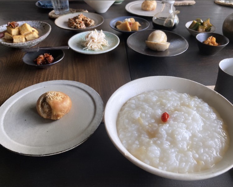 食事での利用は日曜と月曜のみで、中華粥セット(¥2,200)、薬膳スープ(¥880)などのメニューがあり、インスタのDMにて予約が必要です。私たちは中華粥セットを注文。すごく奥が深くて美味しかったです、薬膳や漢方に興味のある友達と一緒だったので色々勉強にもなりました。