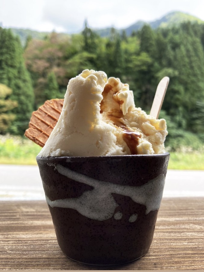 先ほど紹介した蕎麦屋 蛍が運営するジェラート屋さんで蕎麦屋 蛍から車で5分ももかからない場所にあります。蕎麦を食べたレシートを見せると30円 (だったと思います) を割引きしてくれるので、蕎麦をお昼に食べてジェラートをデザートに食べるというのが お決まりコースになっています。
